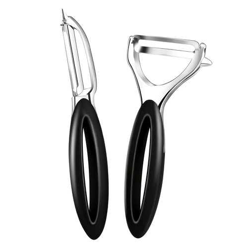 • Potato Peeler Set, 2 Pack Y Peeler & Straight Peeler, Upgraded Ergonomic Easy-Grip Handle, Ultra Sharp Stainless Steel Vegetable Peelers for Carrots, Apples, Cucumbers
